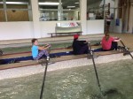 My very first crew practice went like this: Since it was so windy, we couldn’t go out in boats, but we did do hard workout inside. First we used the rowing tank. After that, we went to the boathouse. There were at least 100 boats in there! Coach Christophe explained the rules of using the boats, and then showed us the parts of the boat. Once he finished, we went to the gym, where we worked to build strength in our core and arms. Those are the main parts of the body we have to build up for rowing. Once we finished that, practice had ended! The whole practice was from 1:30-3:30.