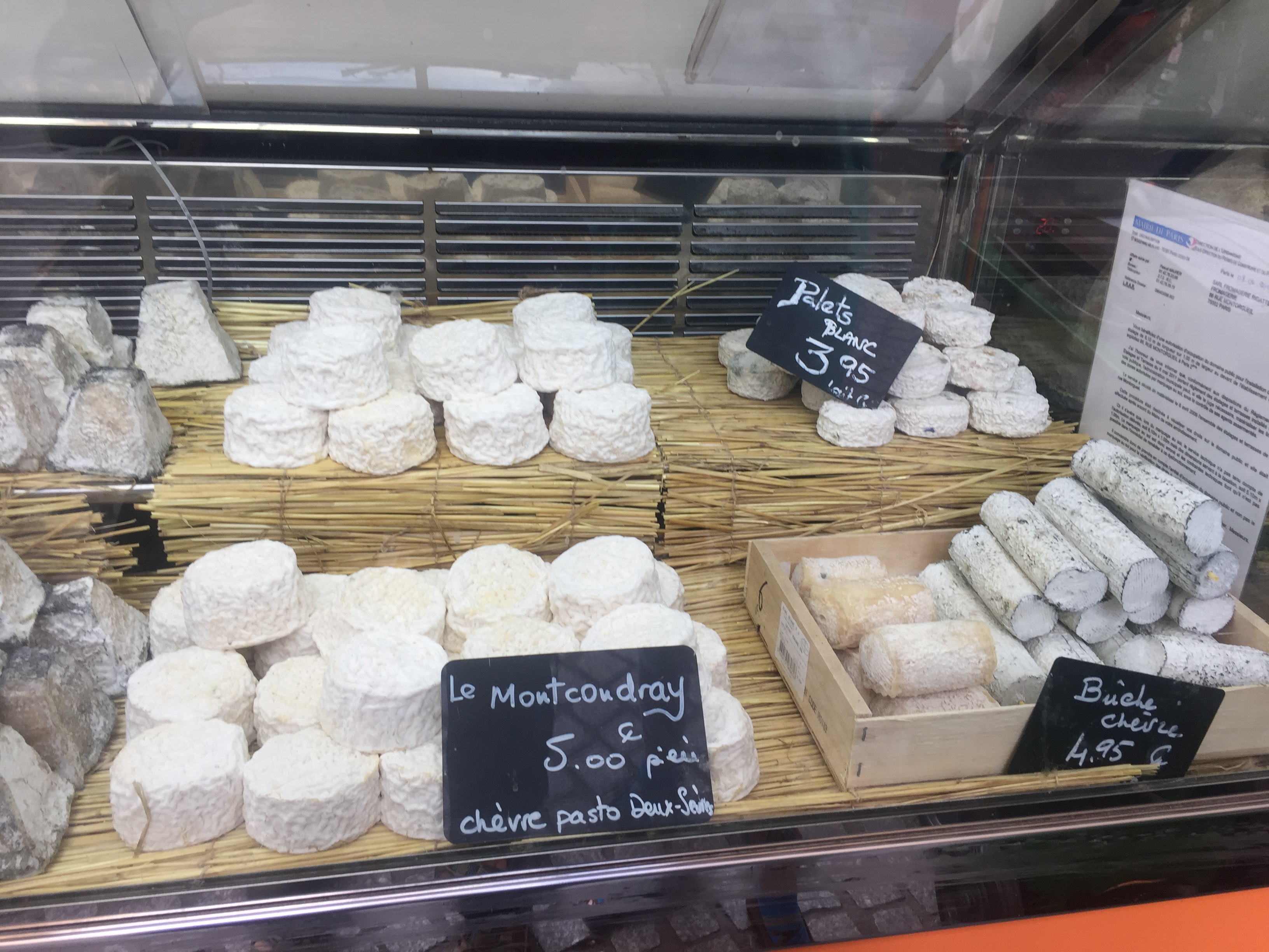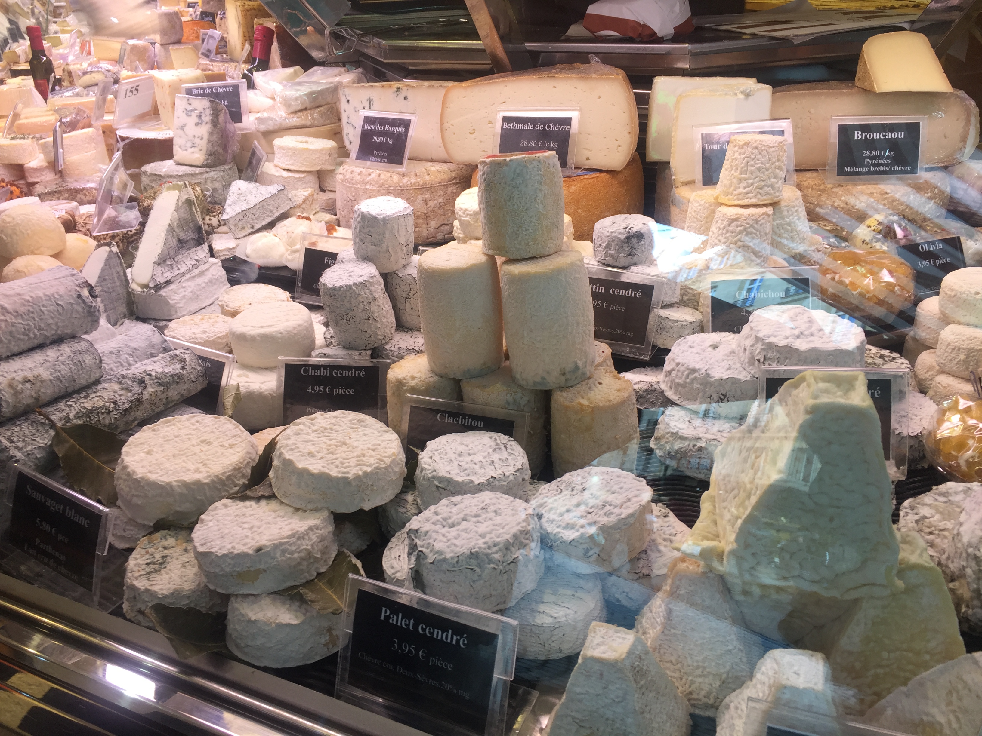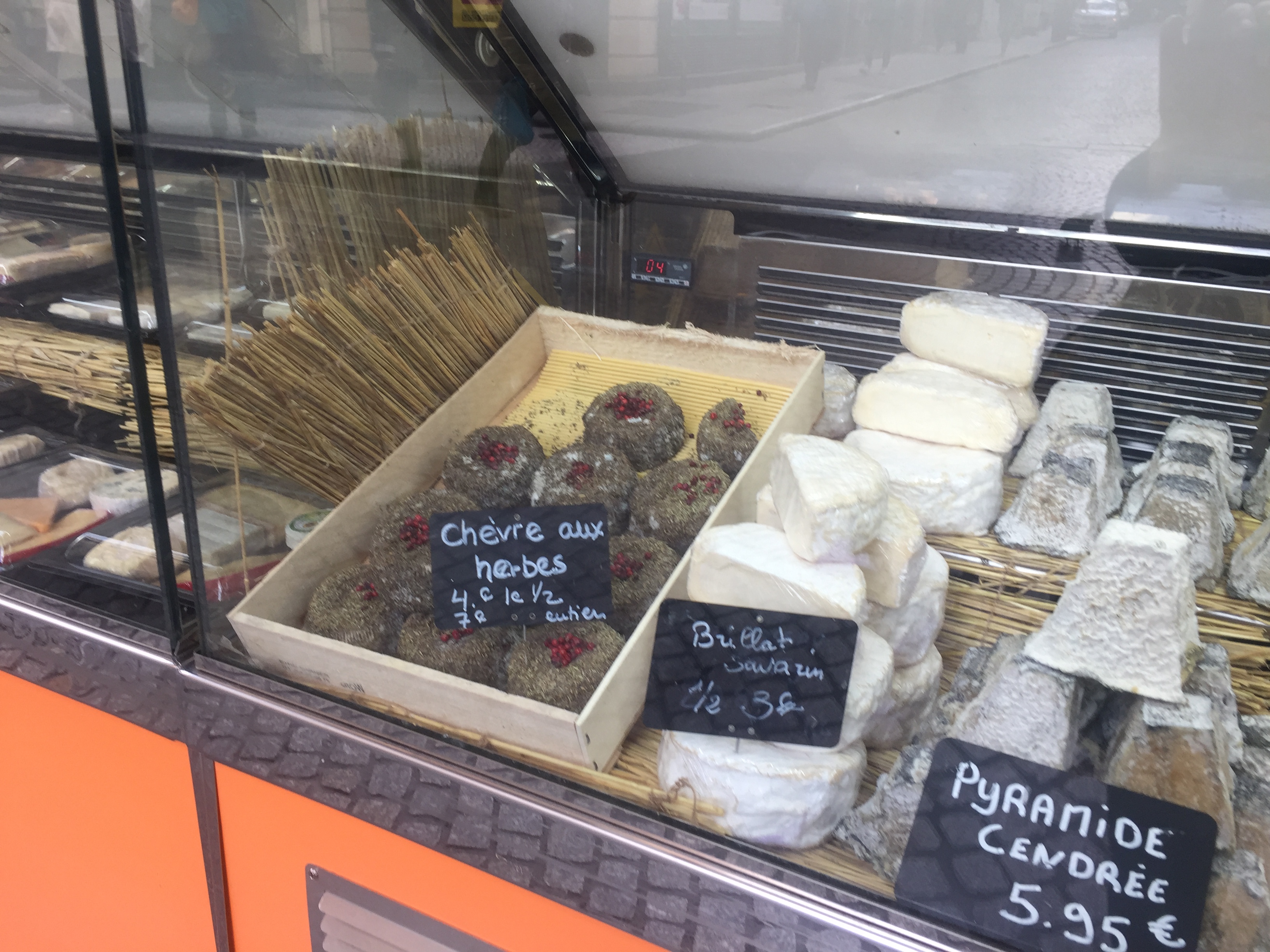 What are the characteristics of a perfect french street? Classic buildings with wrought iron railings, shops with awnings at street level, and no cars, pedestrians only. The shops are would be fruit and vegetable vendors, cheese shops, butchers, and boulangeries. Rue Montorguiel fits the bill. There were multiple cheese vendors – though two were close to empty and one had a line out the door.