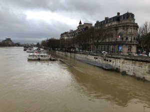 The Seine is supposed to reach is max flood state Wednesday or Thursday (January 26/27 2018). Already it is close to the level of flooding that occurred in 2016. Prior to that, the highest recorded flood state was in 1910.