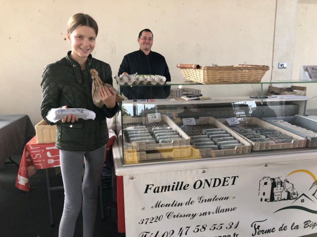 We spoke to the farmer briefly and bought three logs of Saint-Maure de Touraine.