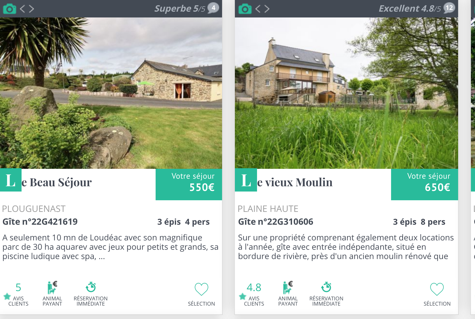 Gites and Chambre d’Hôtes: Gites are stand alone apartments or cottages usually equipped with kitchens and usually for stays of one week or longer. Chambre d’hôtes are bed and breakfasts. I found a site for both called My Gites Breizh. Breizh means Brittany in the local language (Breton). The site is a bit cumbersome and to navigate it you need to know that the northern part of Brittany is called the Côtes d’Armor. Only then you can search within that area on a different site for the Côtes d’Armor.