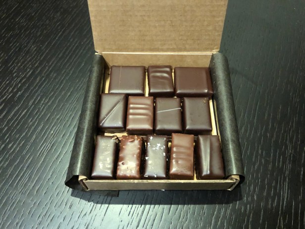 It was a warm day today so I was concerned about melting. No problem. They put our box of chocolates in an “isotherm” bag with a small frozen gel pack.