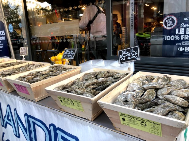 Oysters – Oysters are best eaten in the colder months. They are plumper and more flavorful. Our local Oyster guy appeared in mid-October. He has a stand in front of our local Carrefour on Friday and Satuday. Oysters have also appeared in the markets. The fish vendors at our local market are now selling oysters and a number of oyster only sellers have popped up. Oysters are very popular in France especially for Christmas and New Year’s eve meals.
