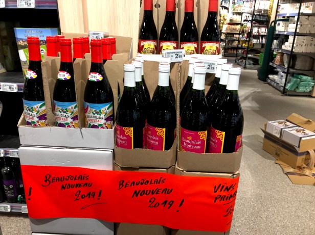 Beaujolais Nouveau – Beaujolais Nouveau appeared in the shops and restaurants today! I did a post on this our first year here. To celebrate its arrival I bought a bottle to drink tonight. Beaujolais is a lovely light red wine. Definitely enjoyable.