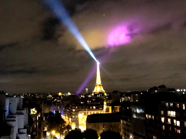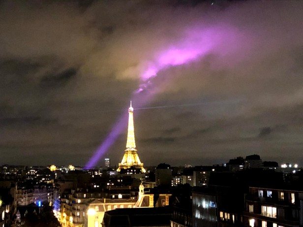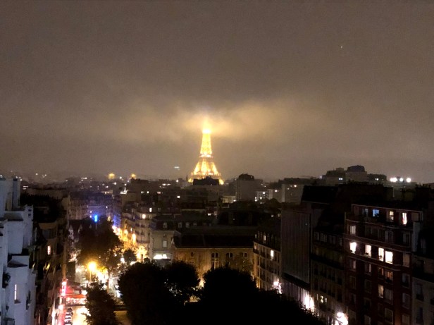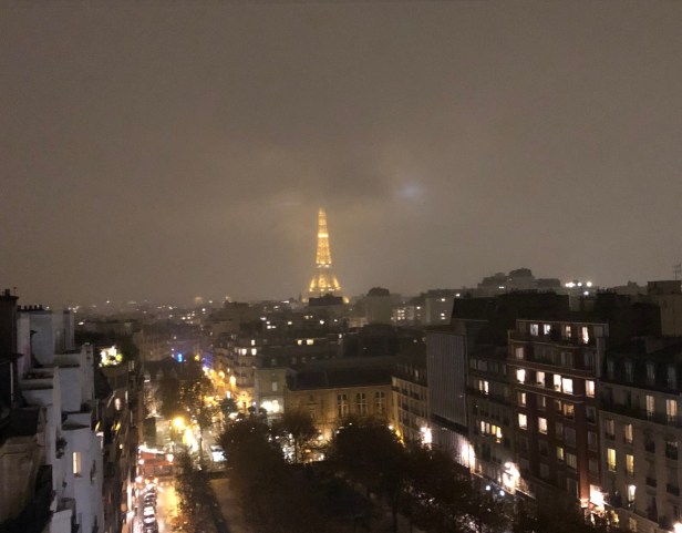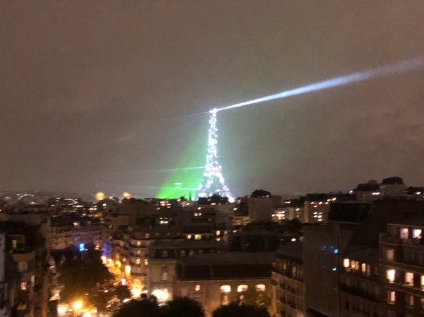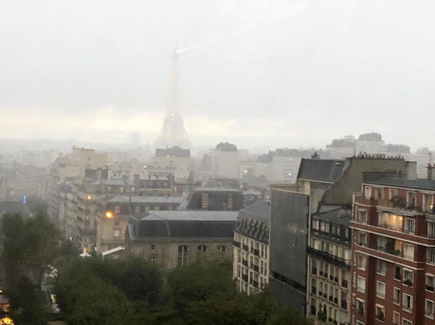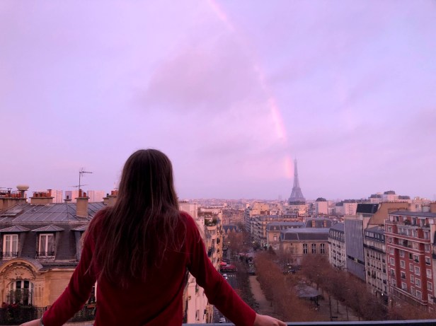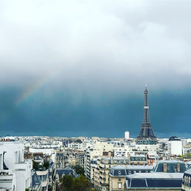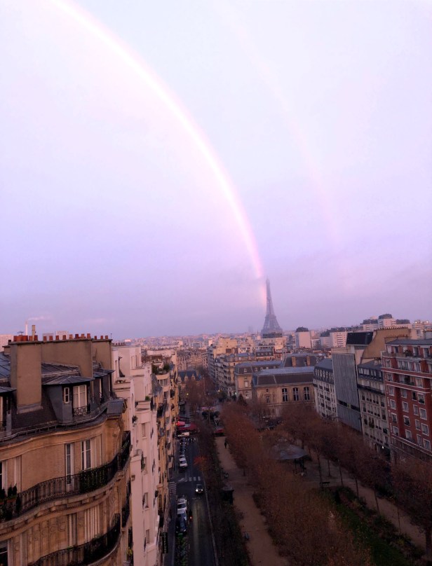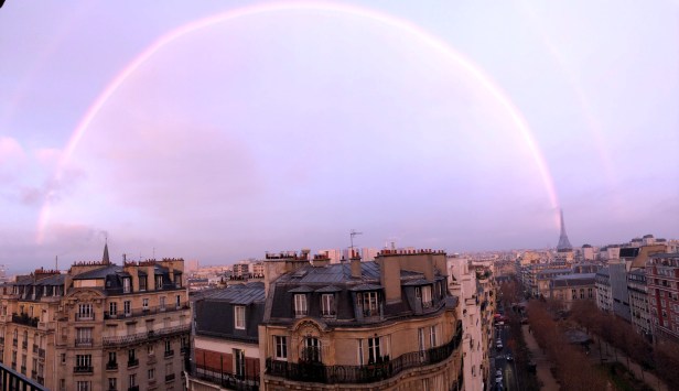 This morning there was an absolutely amazing view of the Eiffel tower! Take a look at the rainbow which starts/ends at the Eiffel tower and if you look carefully, you can see that it is actually a double rainbow!