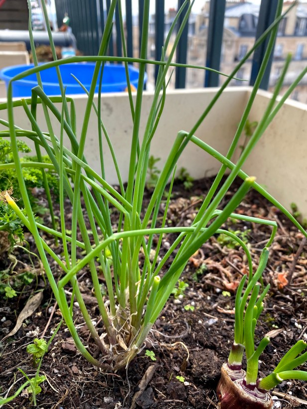 You can also try replanting the bottoms of your green onions or scallions if they have roots. Here is a scallion I just stuck into the soil. Its doing quite well!