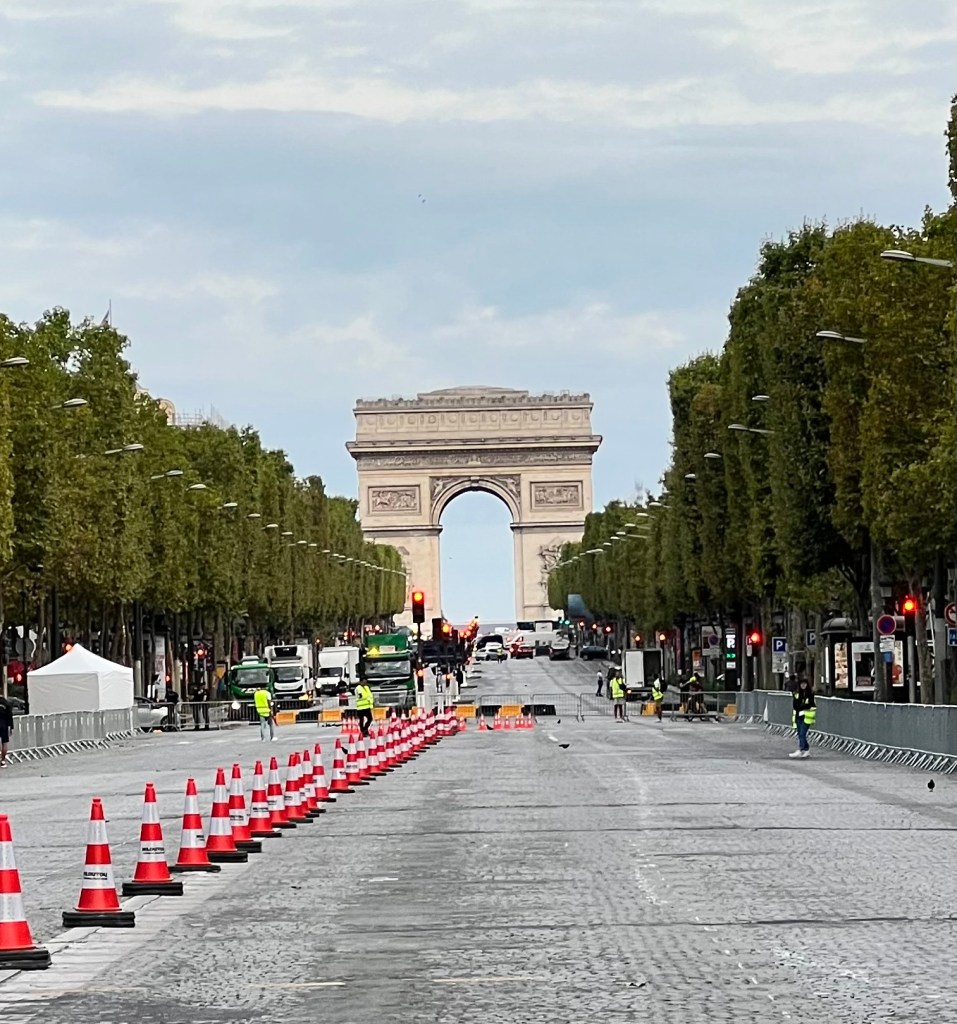 The bike portion is up and down the Champs Elysee (just like the tour de France). For the triathlon they will make 7 loops of the course.