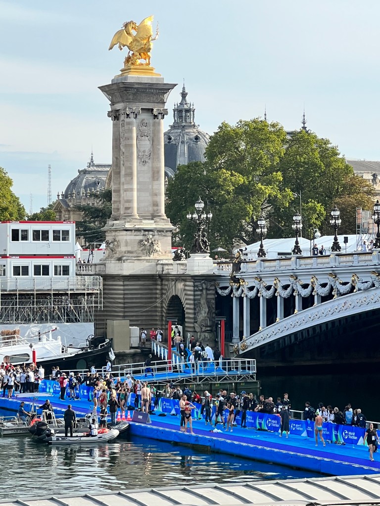 The swim is in the Seine and starts off the gorgeous Pont Alexandre and the finish is there as well. Officials and organizers have been working hard to clean up the Seine (more on that in another post).