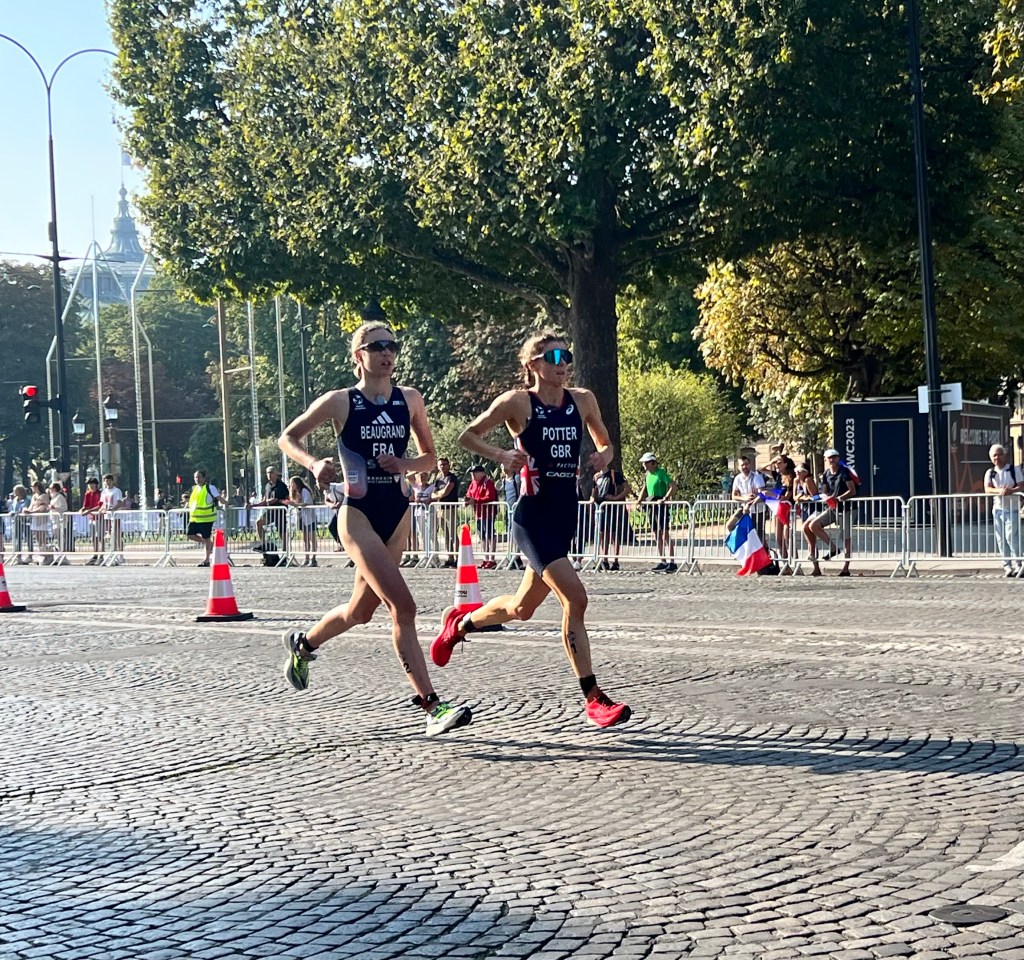 In the end it was close but Cassandre Beaugrand came in second to Beth Potter of Great Britain. Their times were super close!
