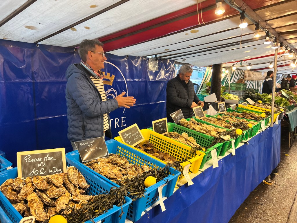 The oyster guys at the market. In addition to being able to buy oysters on the weekends from our local guy, we can buy oysters at the market. Just like our oyster guy they are specialized in oysters but they do also carry some other items like “boulots” – a type of snail. It is already cooked and so yummy.