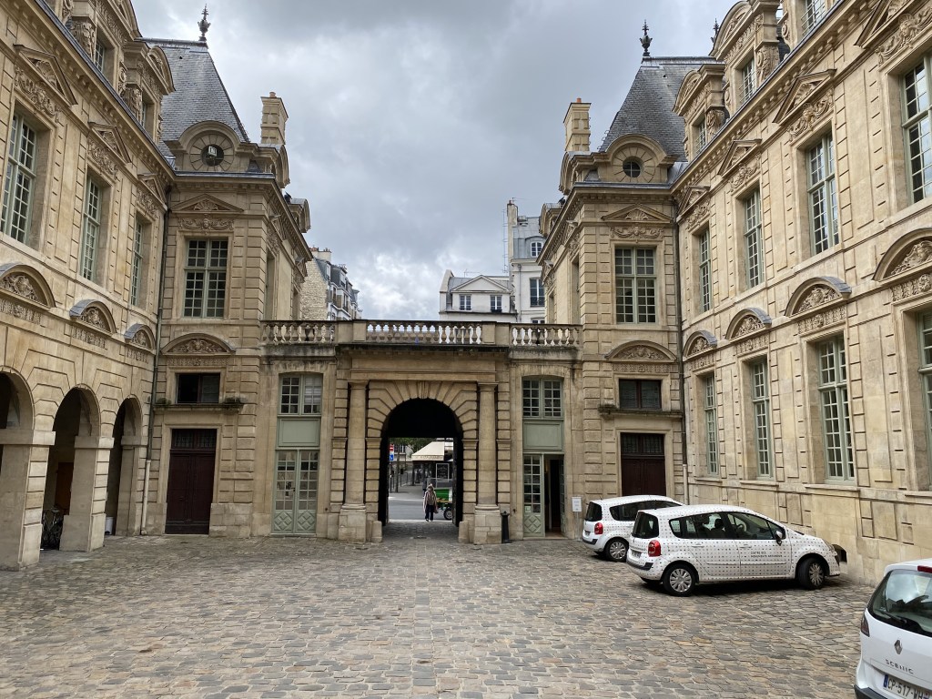 It is a bit confusing to people but many buildings in Paris are called names like “Hôtel de Sully”. These aren’t hotels in that you would stay in them like the Hilton or Marriott. The term “hôtel particulier” means a fancy townhouse or mansion in the city. ”Particulier” refers to an individual or private individual. So a hôtel particulier was an individual’s house. A hôtel particulier would most likely have had a gate and possibly a gate house with an inner courtyard surrounded by a multi-story building all around the courtyard. There are many of these left in Paris. Some have been turned into actual hotels and some have stayed in private hands! Some are so grand that they have become embassies or residencies of the ambassador. Sadly many (in fact most) cannot be visited but you can see them from the outside and sometimes glimpse the courtyard.
